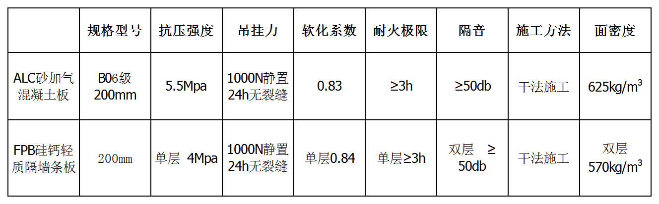 ALC砂加氣混凝土板與FPB硅鈣輕質(zhì)隔墻條板綜合性能比較