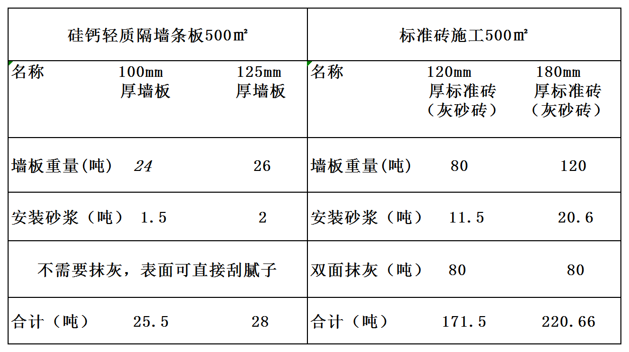 標(biāo)準(zhǔn)磚與FPB硅鈣輕質(zhì)隔墻條板綜合性能比較