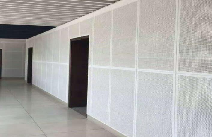 5、 面板的固定:因墻面材料受外力作用頻率高,宜選擇有一定強(qiáng)度的穿孔板,如硅鈣板(硅酸鈣穿孔板)等。板面面積不宜過大,也不宜過小,一般選600×600㎜即可。固定面板前,先在龍骨兩端釘上兩釘子,然后根據(jù)面板厚度,拉出橫豎定位線,以保證墻面整體線條流暢性及整體的平整度。為保證面板有微量伸縮的可能,在固定面板時(shí),須留出5~8㎜縫隙。釘好面板后,用寬約3㎝的木條壓縫,木條用木螺釘或鐵釘直接固定在龍骨上,要求螺釘釘入木條表面以下,所留孔眼用石膏膩?zhàn)友a(bǔ)平,最后用砂紙打磨平整。